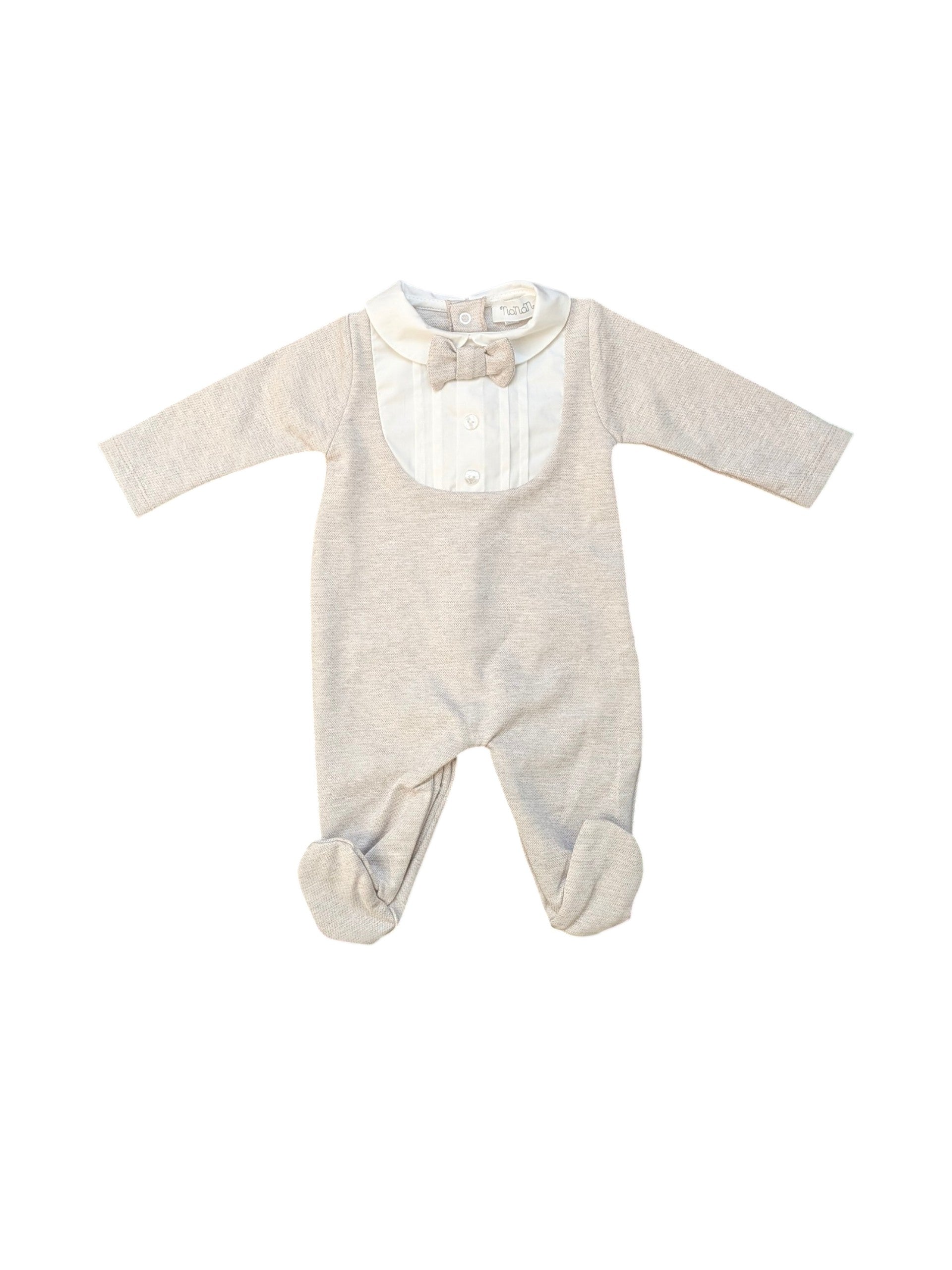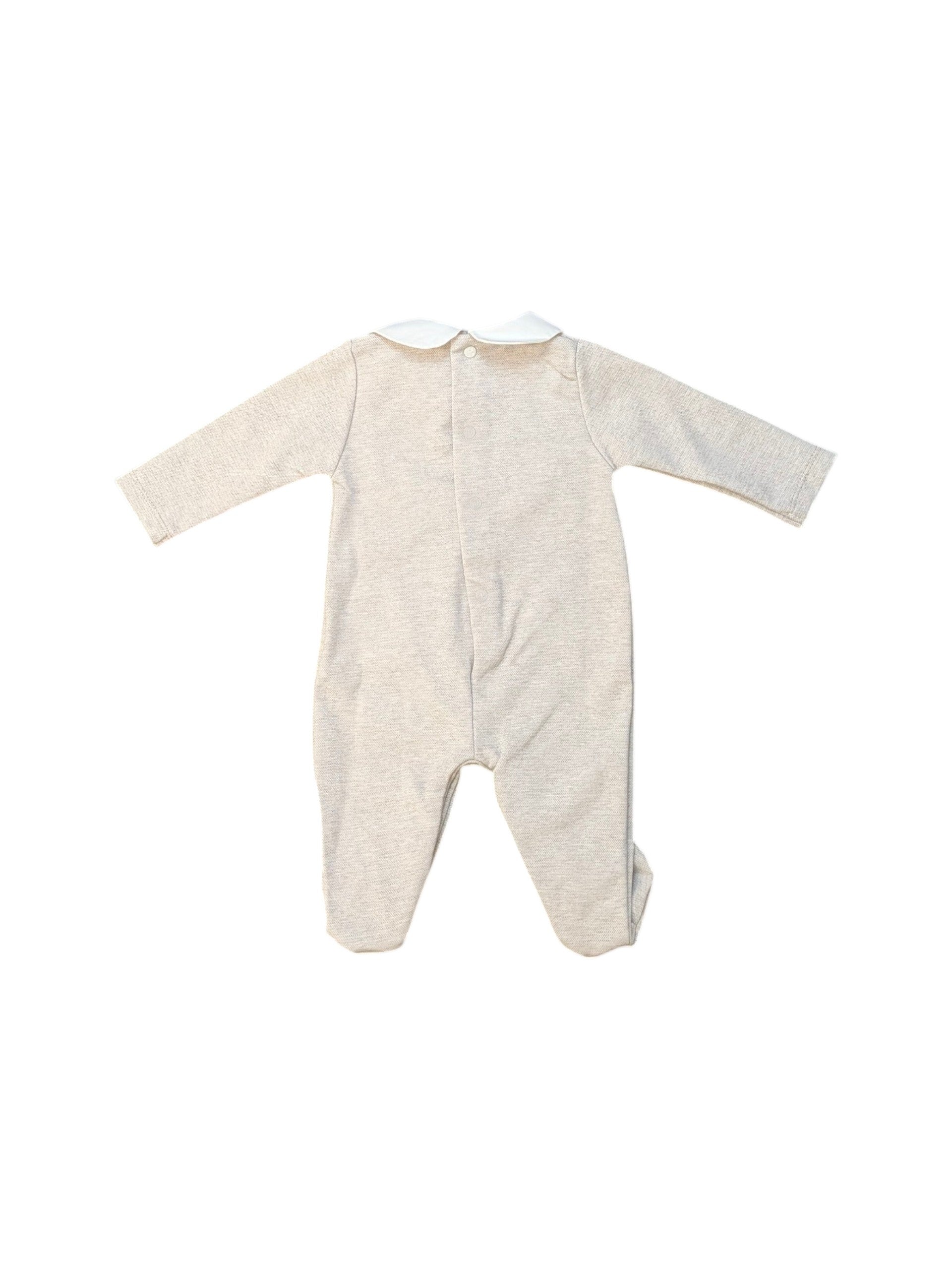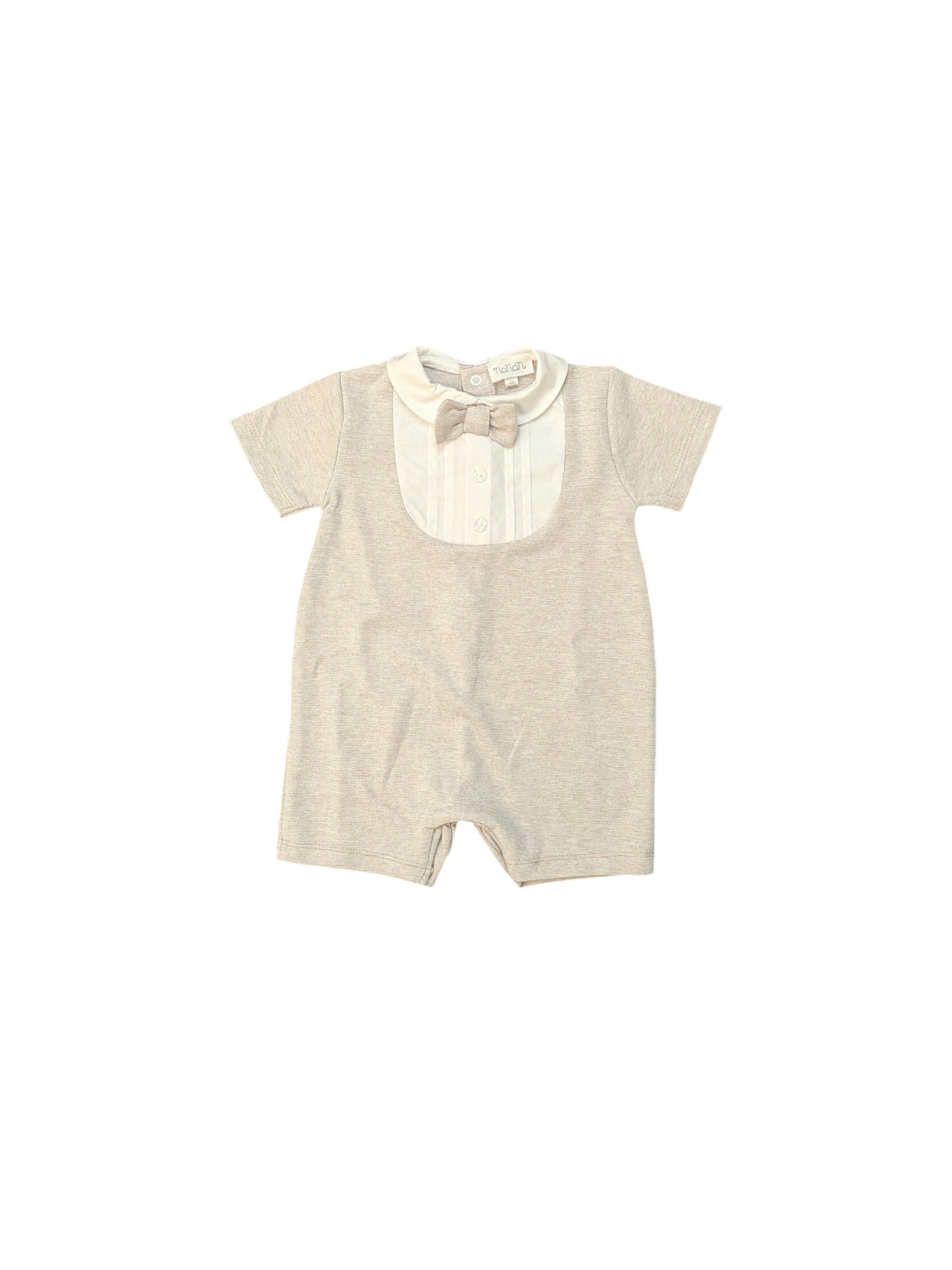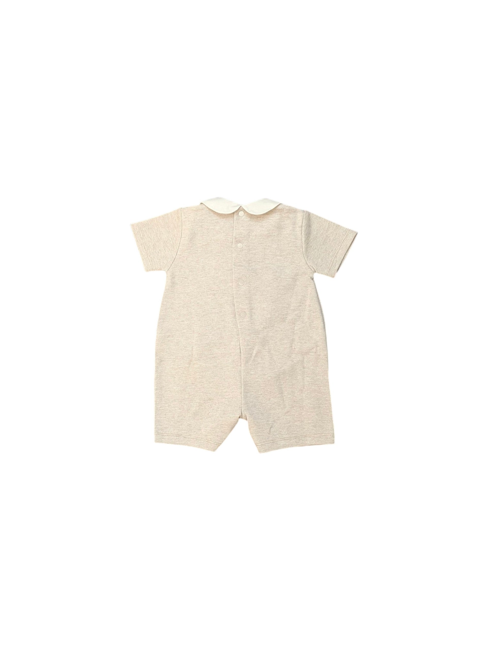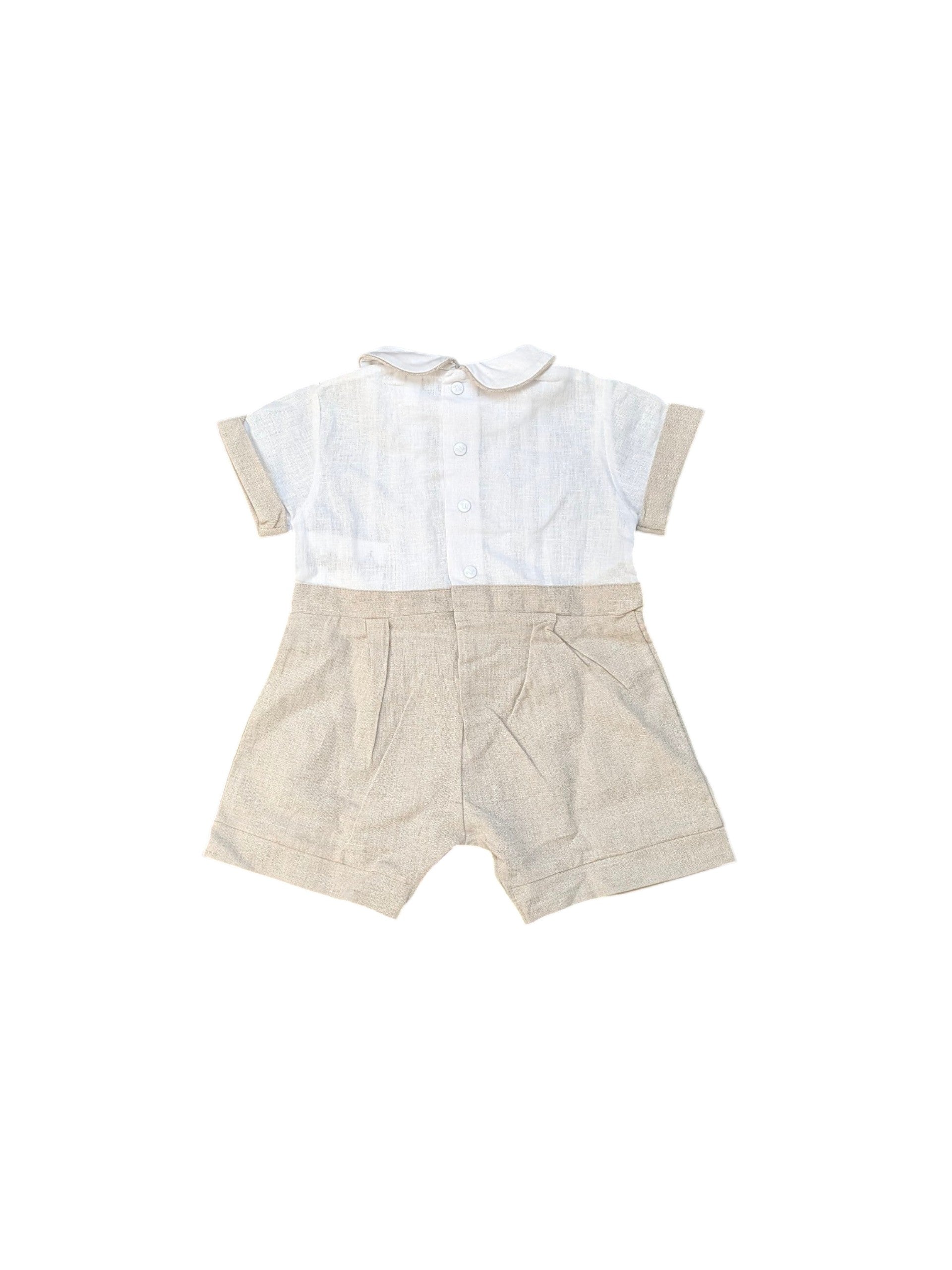 Pagliaccetto beige in misto lino con logo cucito Nanan
