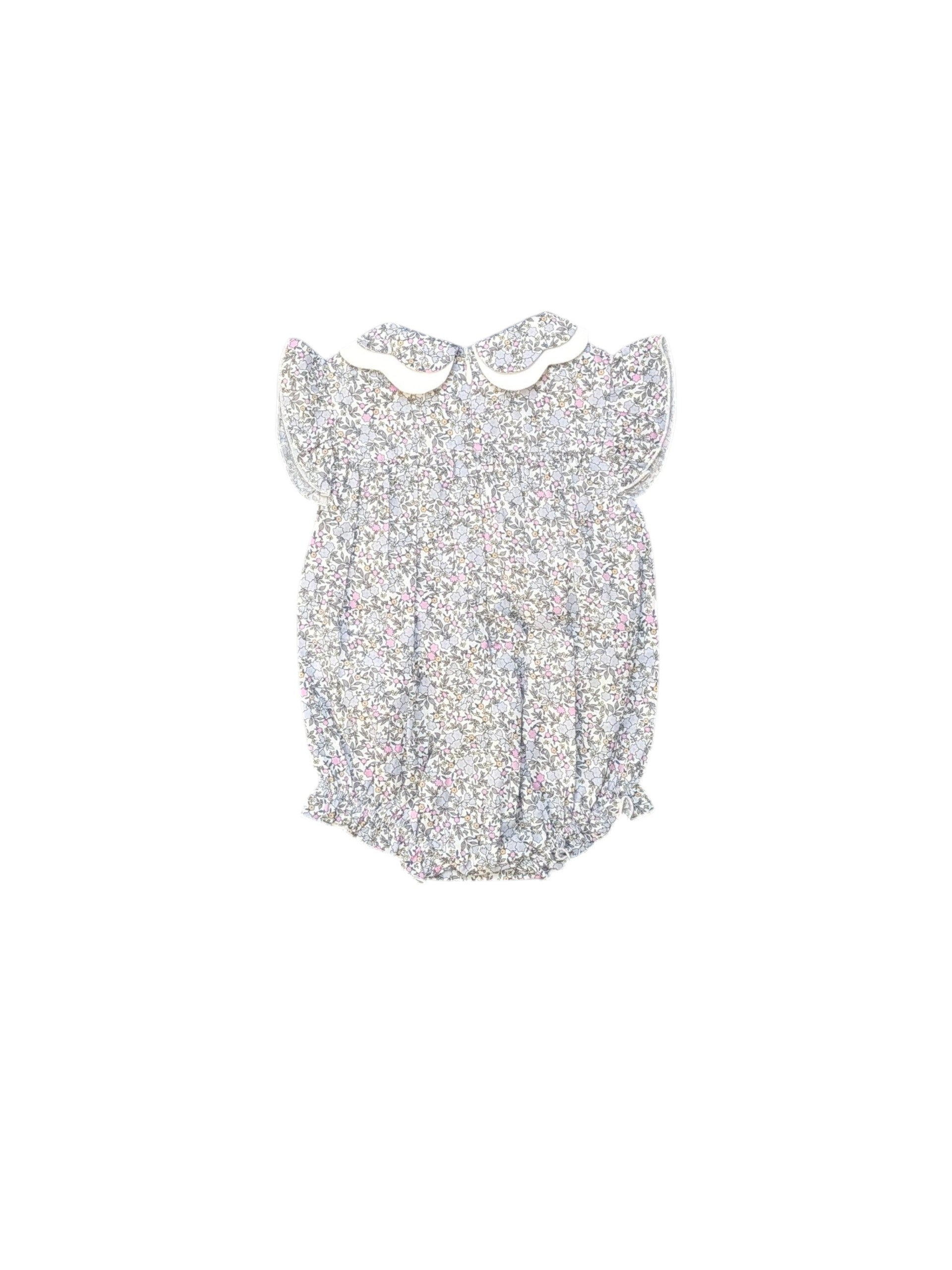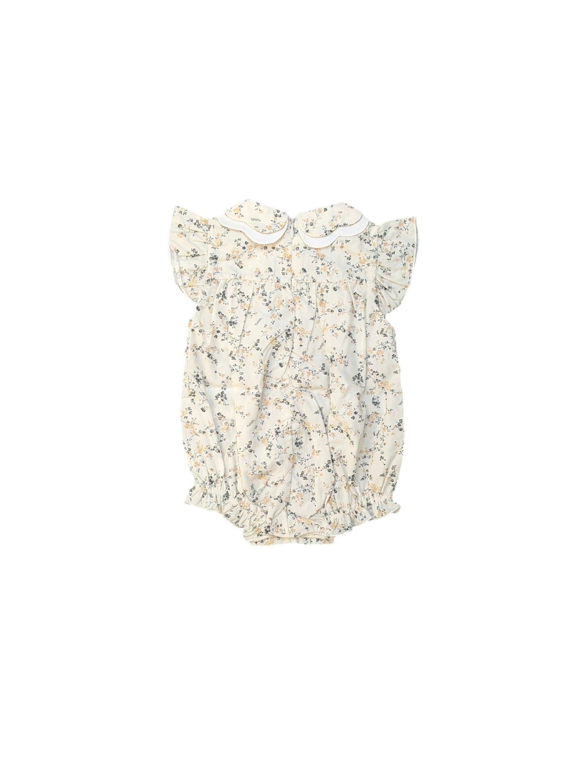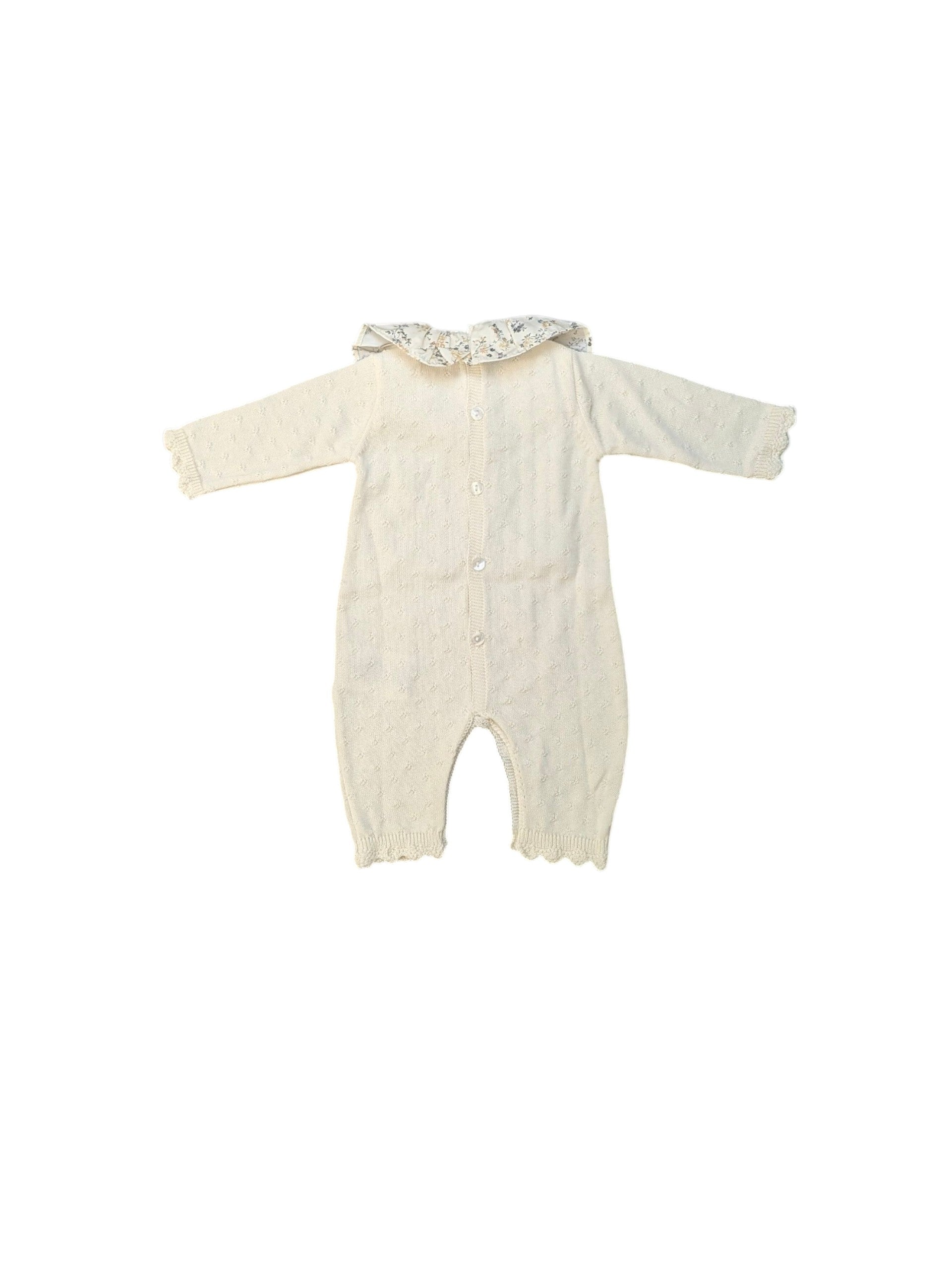 Tutina bianca in filo con colletto con stampa fiori Nanan